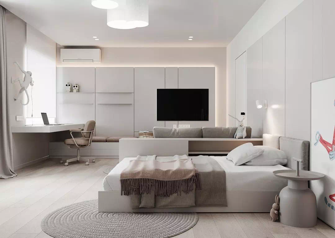 Современный дизайн также ставит акцент на многофункциональность мебели. Кровать с ящиками для хранения, письменный стол с выдвижными ящиками, полки и стеллажи — все это важные элементы современной комнаты подростка, которые помогут сэкономить пространство и упорядочить вещи.