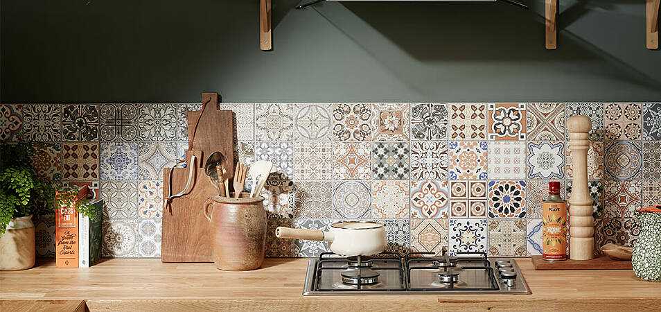 Использование мозаики позволяет создавать различные узоры и рисунки на поверхности кухонного фартука. Можно экспериментировать с геометрическими формами, создавая абстрактные композиции. Также популярны мозаичные рисунки, изображающие фрукты, овощи или другие предметы, связанные с кухонной тематикой.