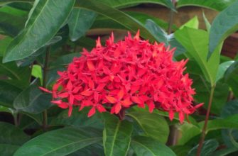 Иксора – это растение семейства Мареновых. Оно известно под разными названиями, такими как Пламя лесов, Цветок невесты, Индийская роза. Именно благодаря ярким красным и оранжевым цветам, Иксора получила