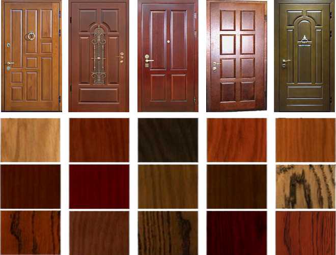 Существует несколько видов покрытий «под дерево», которые могут использоваться для входных дверей: